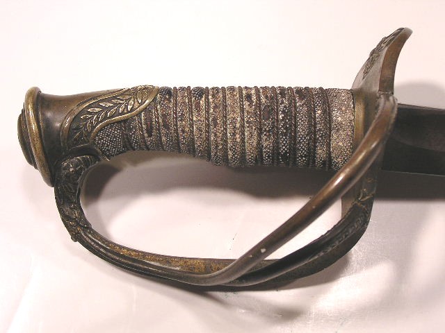 The tongue on the eagle sword belt plate is flattened to the back of the plate. the sword has some nicks in the blage edge and the overall sword has a great patina as do both plates. The hilt has a bit of a shake with the blade. This has been in a private collection for decades and originally obtained from the family. Daniel Duesler was in Company B of the Chandler Horse Guards from August 18, 1861 to November 22, 1861, mustering out in Coldwater, Mi. On July 7, 1862 he was commissioned Lieutenant in Company G of the 4th Michigan Cavalry becoming Captain on February 1, 1863. He was discharged for disability on June 27, 1863. A nice grouping in near untouched condition. During Duesler's time in, the 4th was frequently engaged with Col. John Hunt Morgan and C.S. Gen. Nathan B. Forrest. |